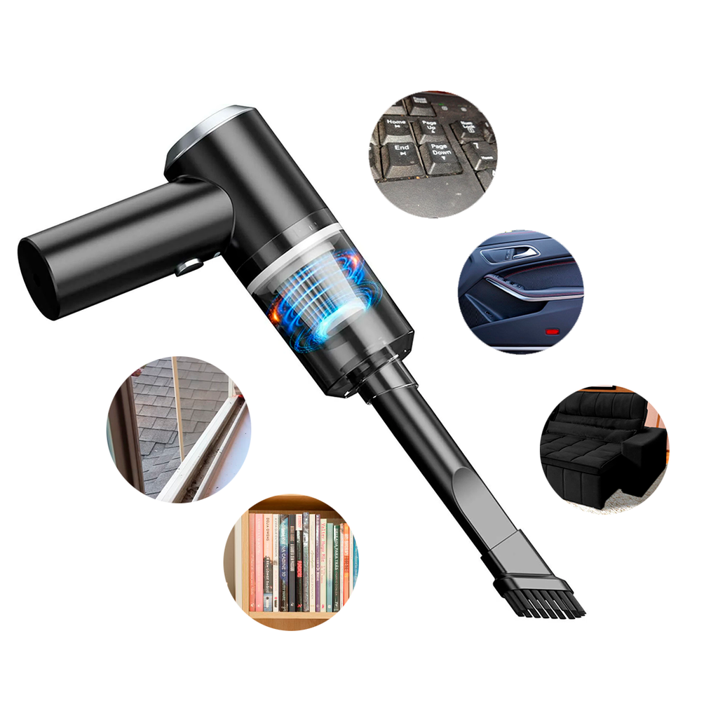 Mantenha seu carro e sua casa sempre limpos com o Mini Aspirador Portátil Sem Fio Recarregável! Ideal para quem busca praticidade, eficiência e portabilidade no dia a dia.