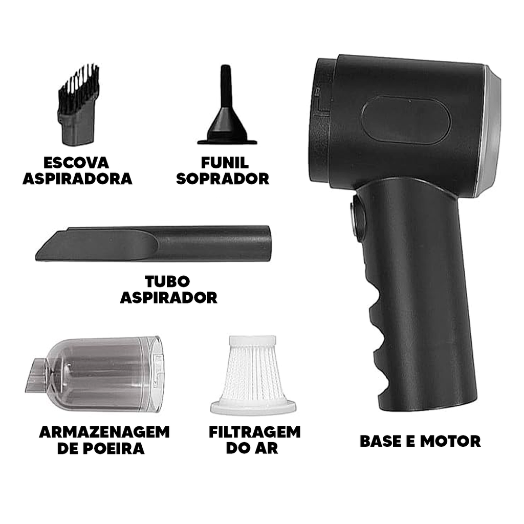 Mini Aspirador Portátil Sem Fio Recarregável - Limpeza Rápida e Poderosa para Carro e Casa